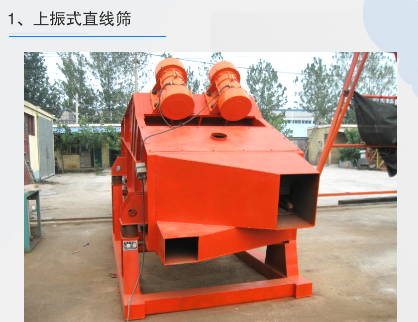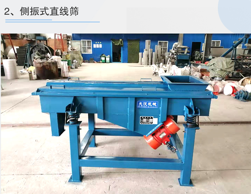将兩台振動電機安裝在直線篩上方位置,主要用于對出料口高度、寬度都有限制場合。